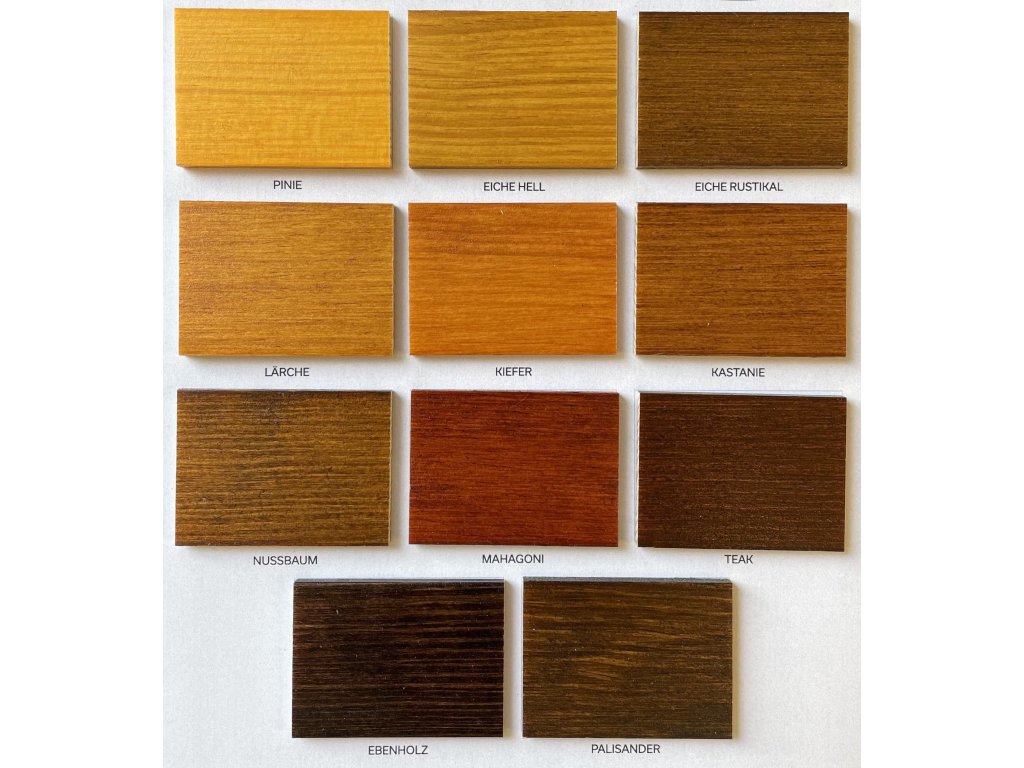 - Pred použitím výrobok dôkladne rozmiešajte a na skúšobnej ploche skontrolujte farebný odtieň. U drevín s vysokým obsahom vo vode rozpustných látok (dub, smrekovec, niektoré exotické dreviny) môže dochádzať k ich vymývaniu a zafarbeniu okolia.