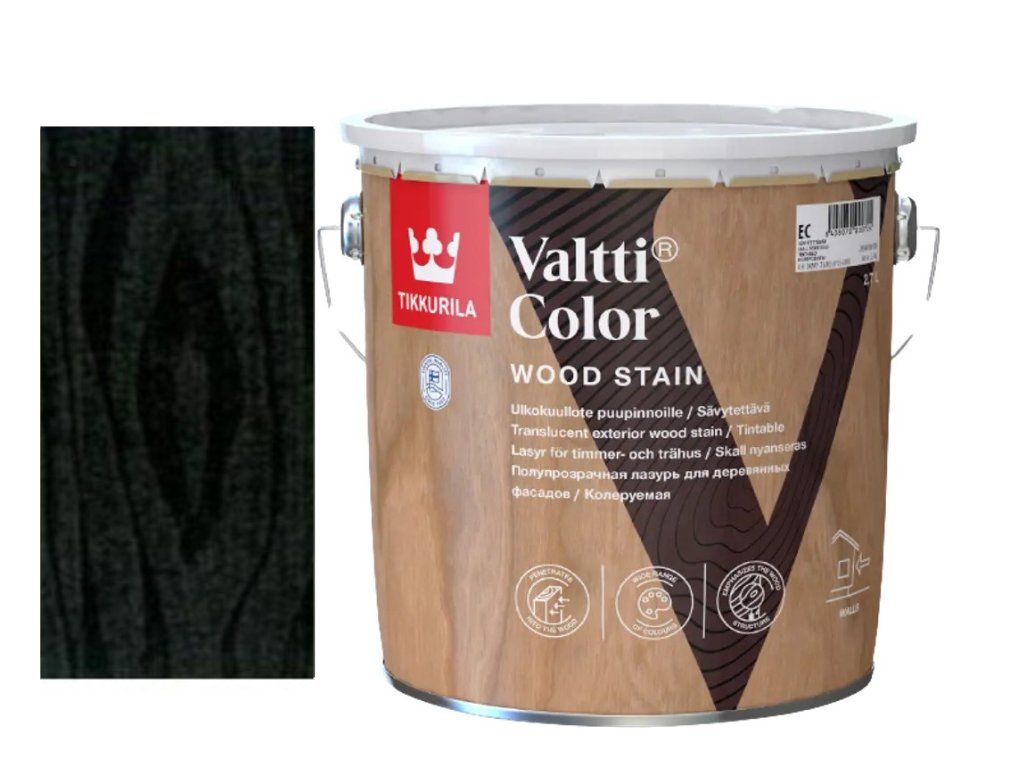| Povrchová úprava | Před použitím promíchejte. Aplikujte dva nátěry VALTTI COLORU ve směru růstu dřeva. Obzvláště si dejte záležet při natírání na letech dřeva. Chraňte rostliny před odstřiky VALTTI COLORU a VALTTI BASE. |