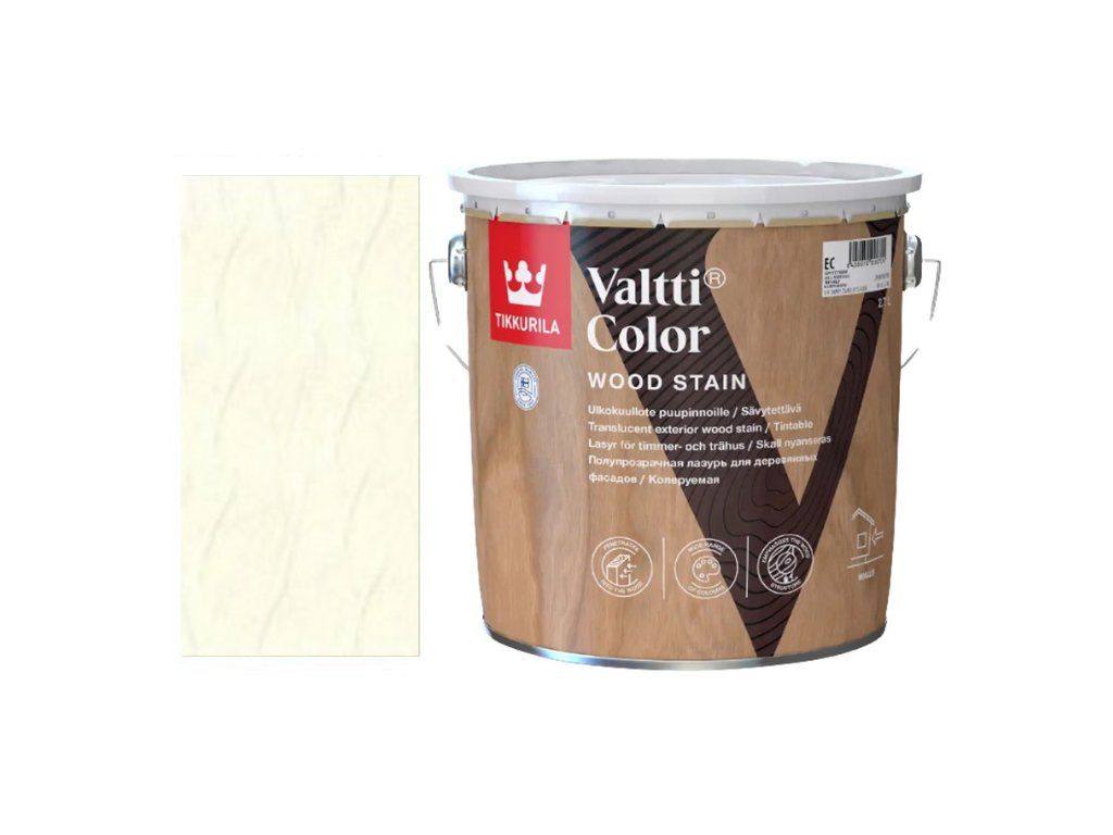 | Povrchová úprava | Před použitím promíchejte. Aplikujte dva nátěry VALTTI COLORU ve směru růstu dřeva. Obzvláště si dejte záležet při natírání na letech dřeva. Chraňte rostliny před odstřiky VALTTI COLORU a VALTTI BASE. |